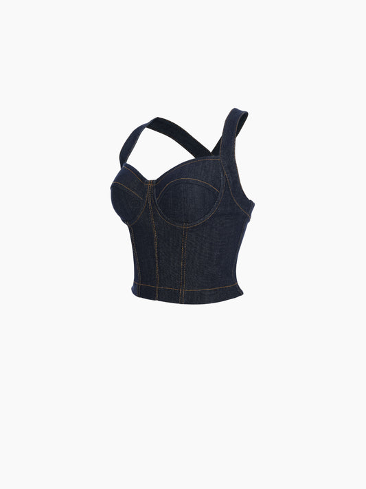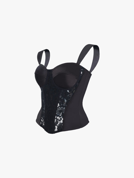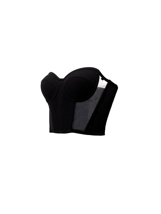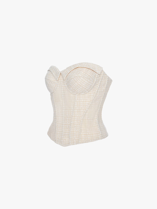 BEIGE JACQUARD STRAPLESS CORSET TOP